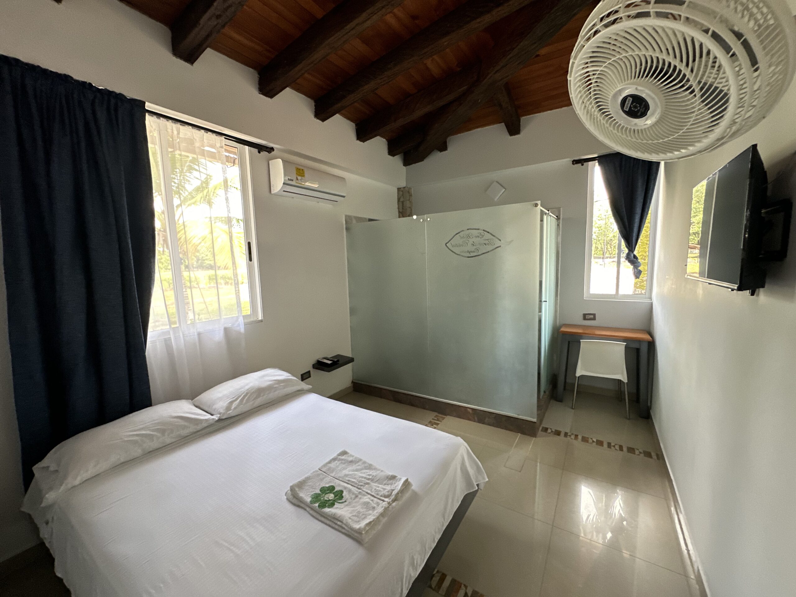 Descubre la comodidad de nuestra Habitación Doble Económica en el Eco Hotel Torre de Cristal Campestre, ubicado en Cimitarra, Santander. Disfruta de un entorno natural con una piscina al aire libre, jardines hermosos, salón de uso común y bar. Además, el hotel ofrece servicio de habitaciones, recepción 24 horas y conexión wifi gratuita en todas las instalaciones.