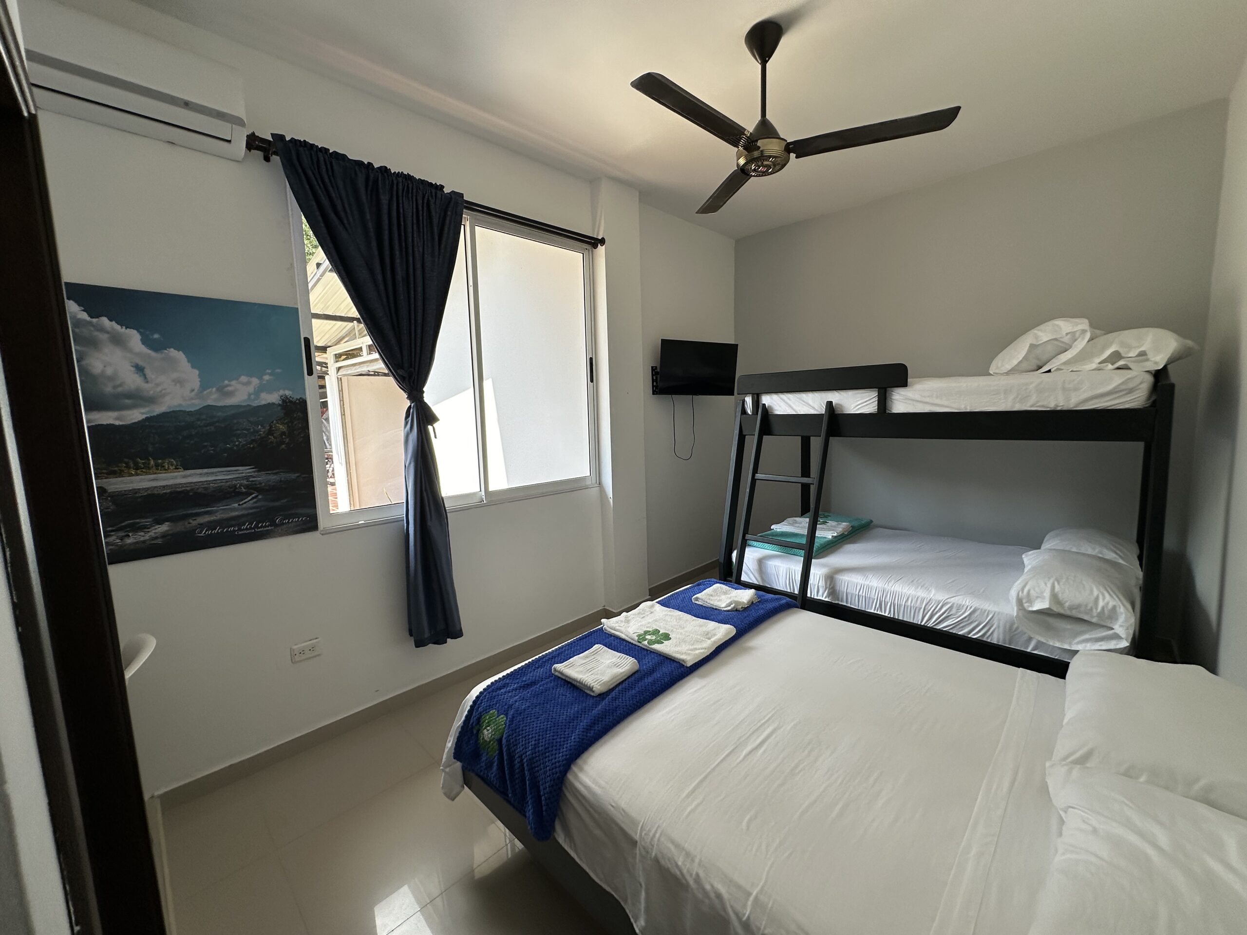 Disfruta de una estadía perfecta en familia en nuestra Habitación Familiar con Cama Doble y Camarote. Este espacio está diseñado para brindarte comodidad, funcionalidad y un ambiente acogedor durante tu visita al Eco Hotel Torre de Cristal Campestre, en Cimitarra, Santander.